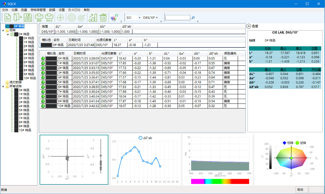 TS7036分光色差儀搭配的SQCX品質(zhì)管理軟件,適用于各個(gè)行業(yè)的品質(zhì)監(jiān)控和顏色數(shù)據(jù)管理。將用戶的顏色管理數(shù)據(jù)化,比較顏色差別,生成測試報(bào)告,提供多種色空間測量數(shù)據(jù),定制化客戶的顏色管理工作。